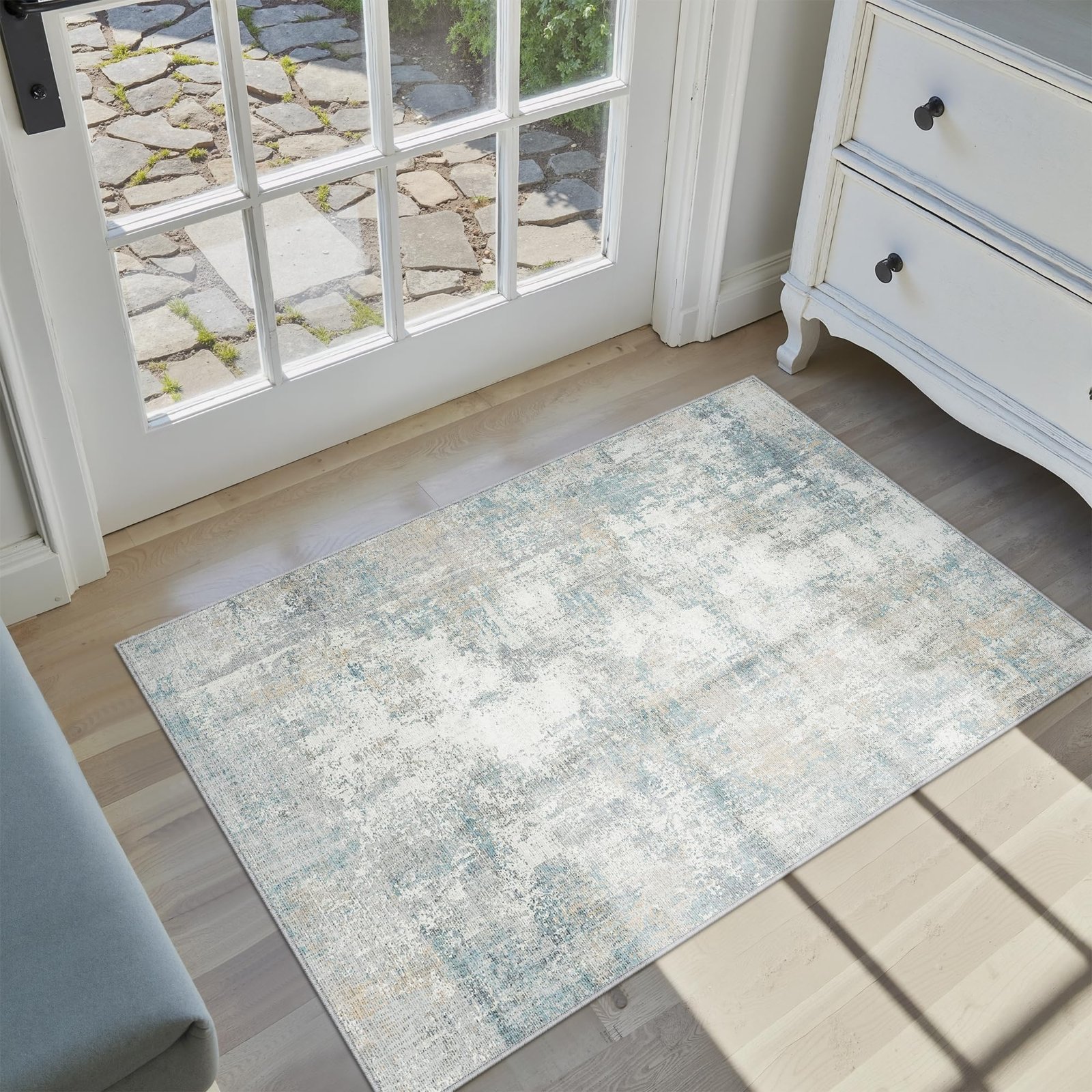 8×10 Washable Area Rug Beige Grey Abstract Living Room Bedroom Carpet Neutral Modern Non Slip Soft Low Pile Indoor Large Throw Rug for Dining Room Office