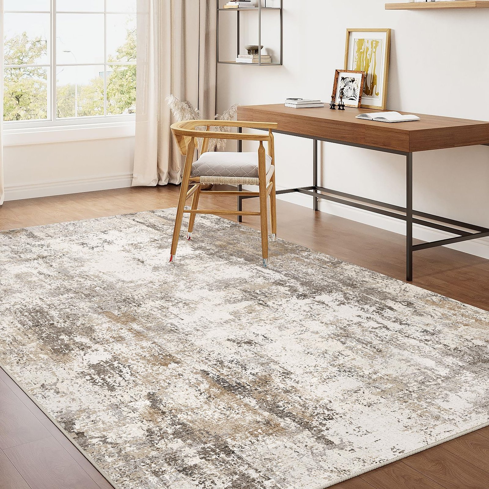 8x10 Washable Area Rug Beige Grey Abstract Living Room Bedroom Carpet Neutral Modern Non Slip Soft Low Pile Indoor Large Throw Rug for Dining Room Office8×10 Washable Area Rug Beige Grey Abstract Living Room Bedroom Carpet Neutral Modern Non Slip Soft Low Pile Indoor Large Throw Rug for Dining Room Office